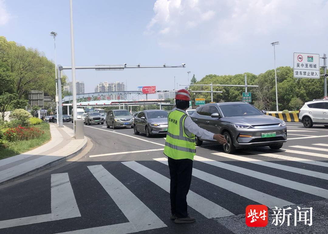 苏州高速城区收费站工作人员现场指引车辆通行 随着江浙沪自驾游热度持续攀升,苏州高速白洋湖服务区作为重要交通节点,今日也迎来客流高峰。截至15时,服务区累计接待车辆13422辆,服务司乘人员20133人次,较去年同期增长11.7%。服务区“司机之家”、母婴室、第三卫生间、“适老专窗”等设施24小时开放,满足不同人群的需求。